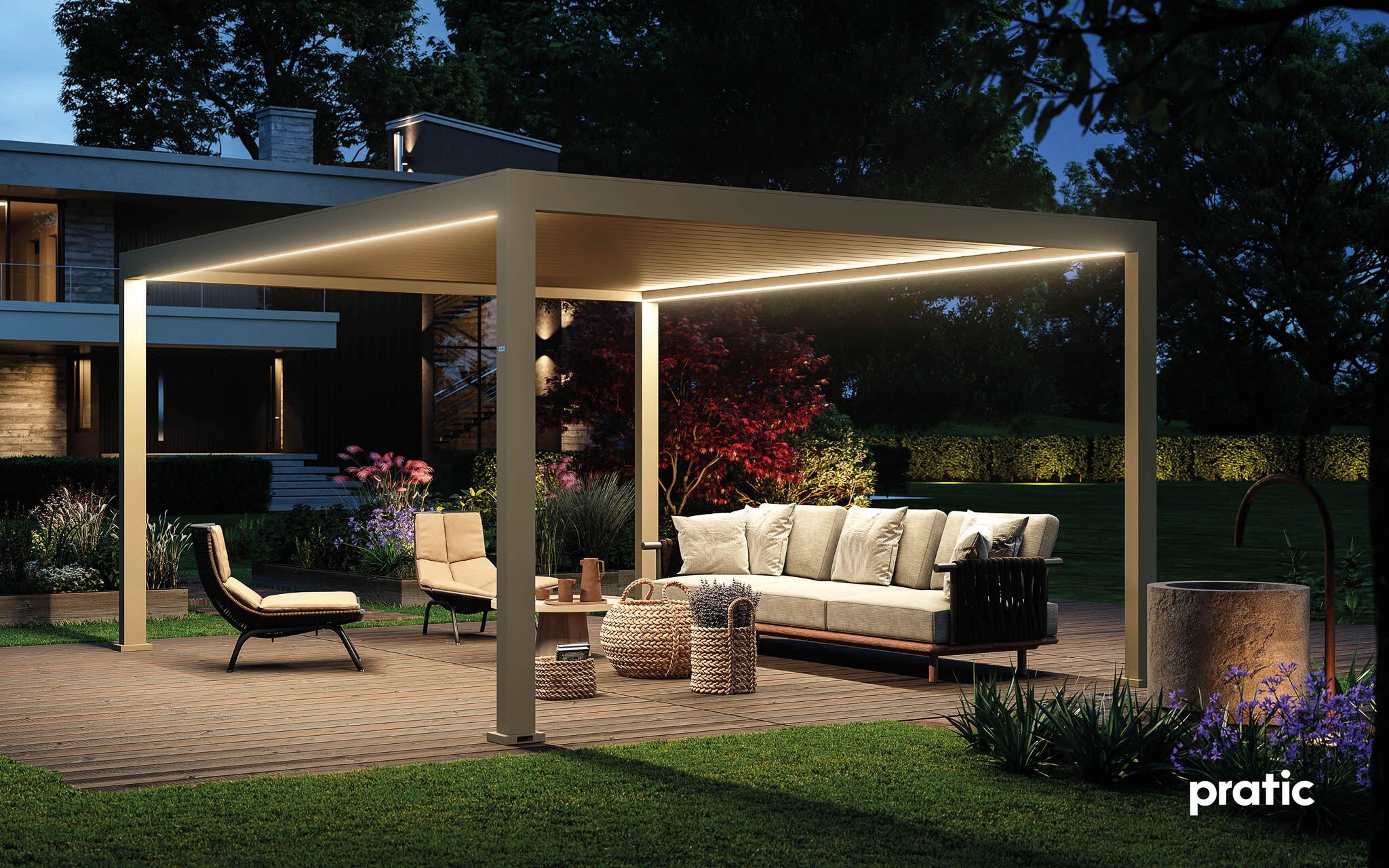 Sense pergola fra Pratic – skreddersydd styring av lys og klima