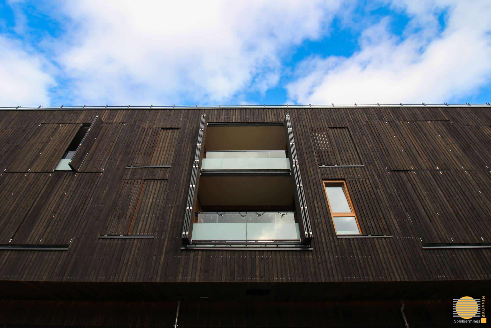 Arkitektene bak boligprosjektet, 4B Arkitekter, kom frem til en løsning der fasaden på bygget har mørkbeiset panel med sterke og tydelige lameller i treverk. Solskjermingsgruppen har gjort en svært nøye prosjektering av de ulike dimensjonene på skoddene for å få trelamellene på skoddene til å passe nøyaktig med resten av fasaden. Det var viktig at de horisontale trelamellene på skoddene satt presist med panelet på fasaden, slik at de tydelige linjene ville samsvare over hele bygget. Når vinduene og balkongene på fasaden dekkes av skoddene ser det ut som at fasaden er heldekket i treverk – et vanlig trekk man ser i fasaden til låver.
