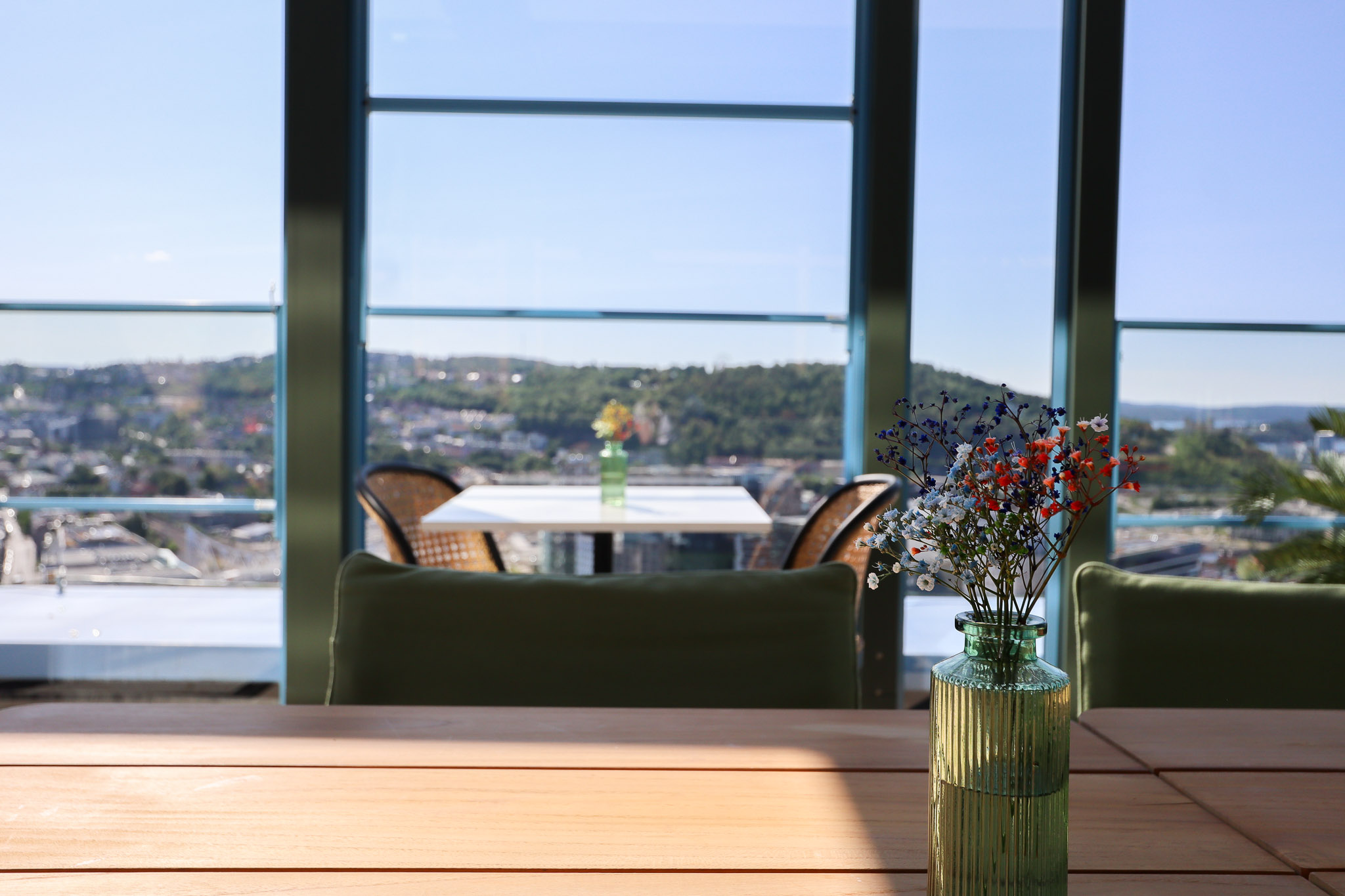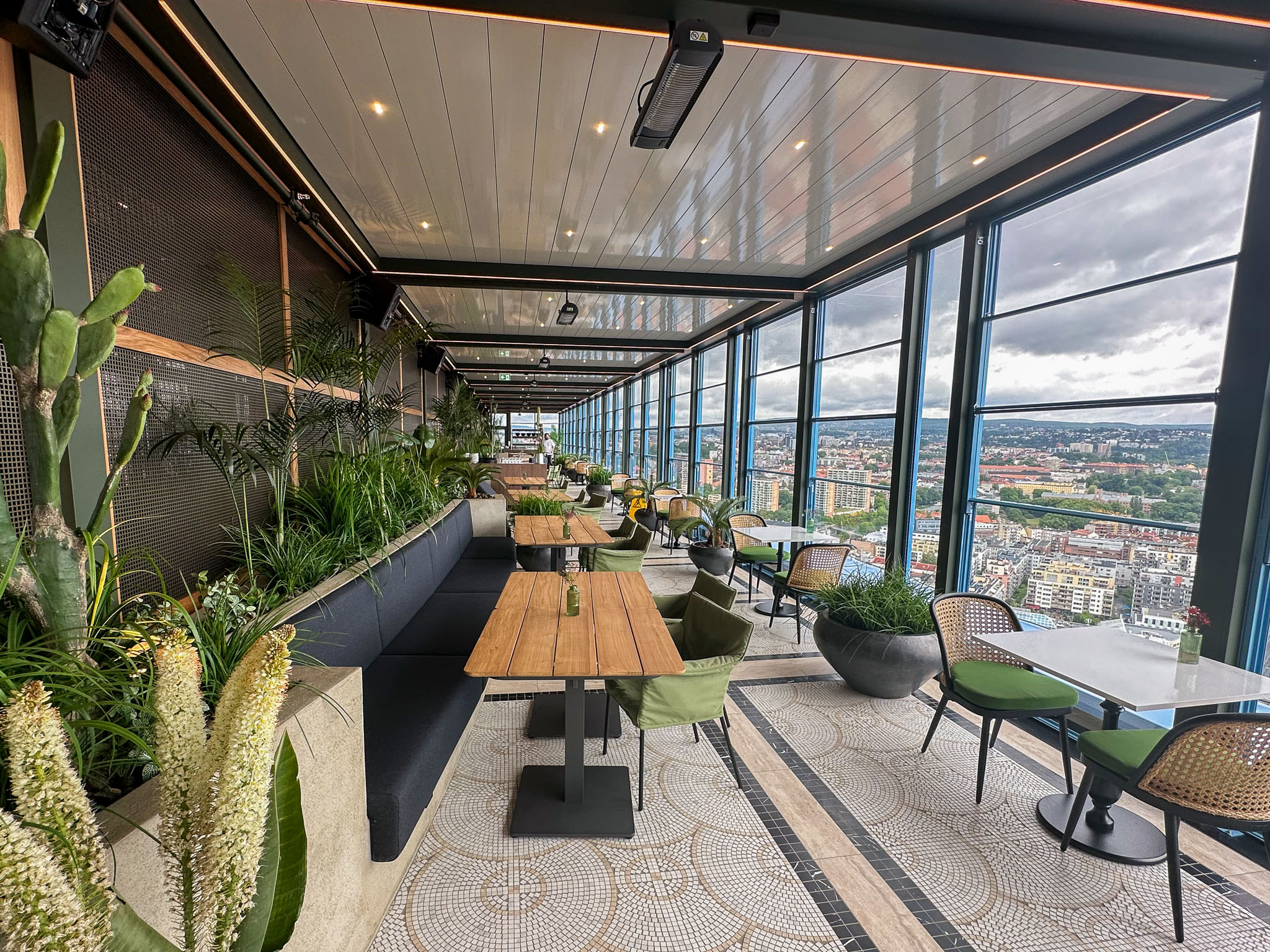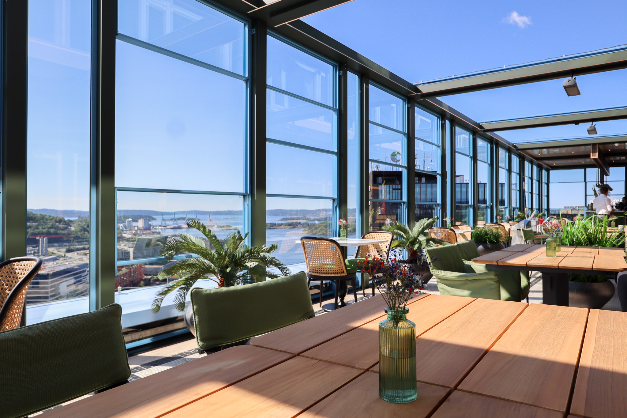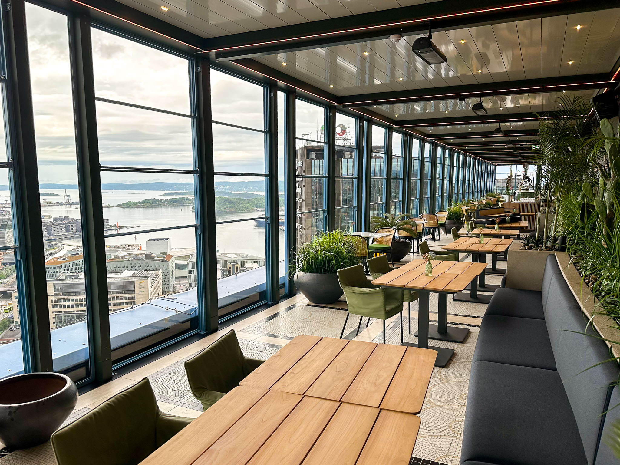 På selve åpningsdagen var det fortsatt noe aktivitet på takterrassen, og finpussen fortsatte helt frem til siste timen. Alt så plettfritt ut og Oslo Plaza kunne med stolthet åpne Skandinavias høyest beliggende uteservering og ønske alle besøkende hjertelig velkommen!