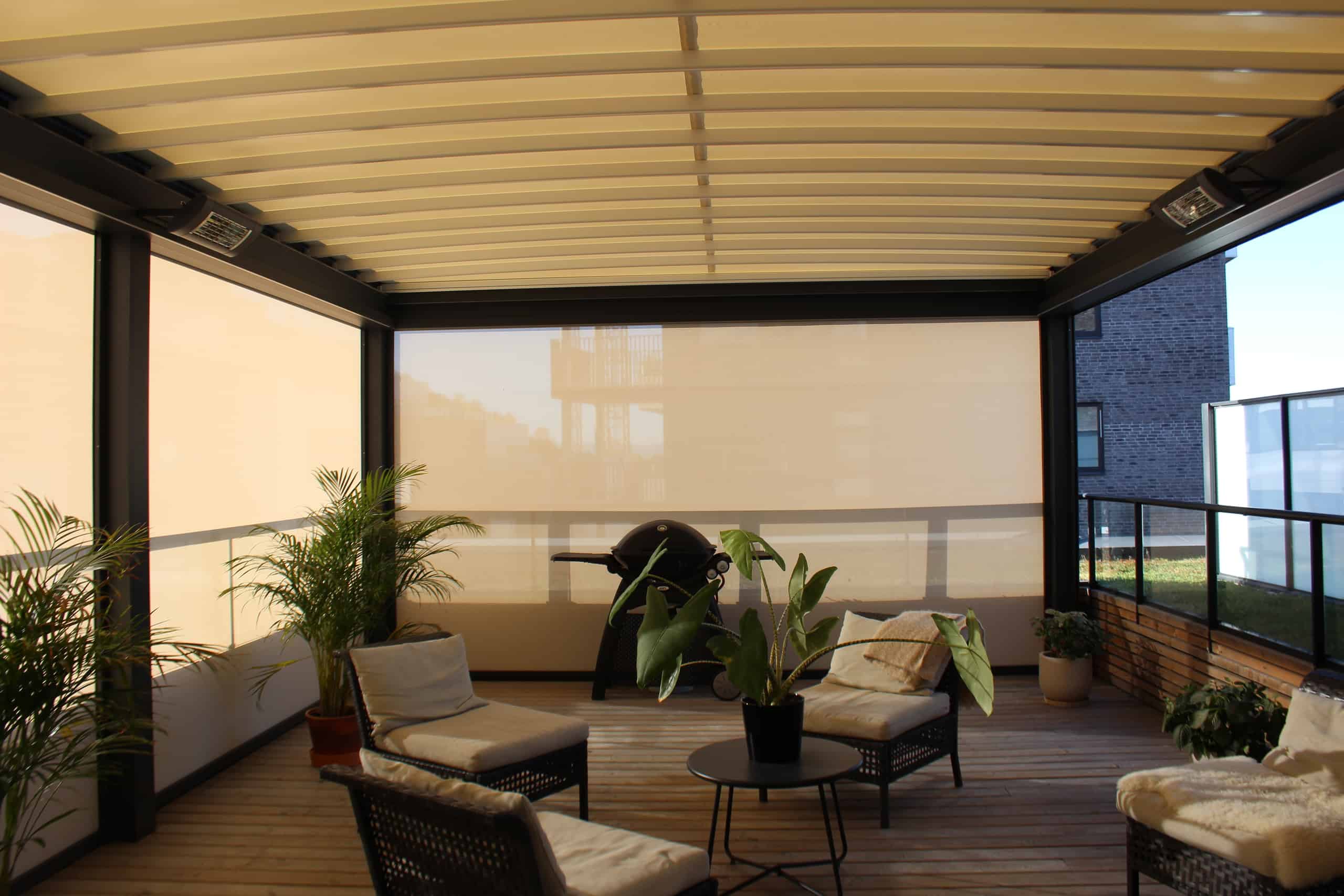 Pratic Nomo pergola med Raso levegger, Solamagic varmelamper og styringssystem fra Somfy.