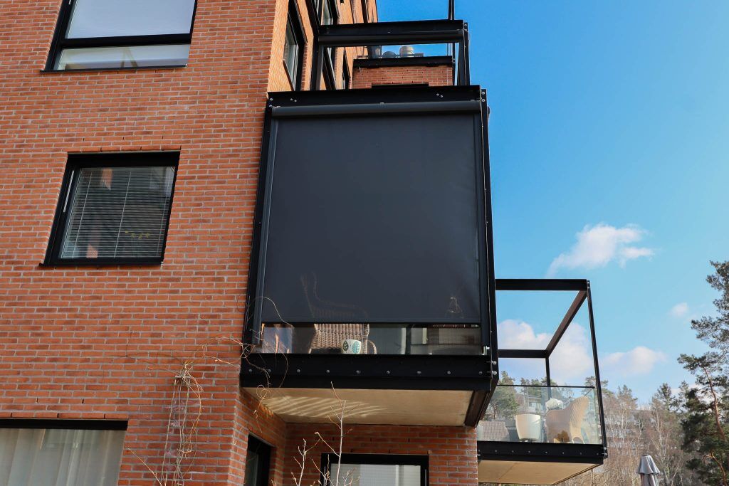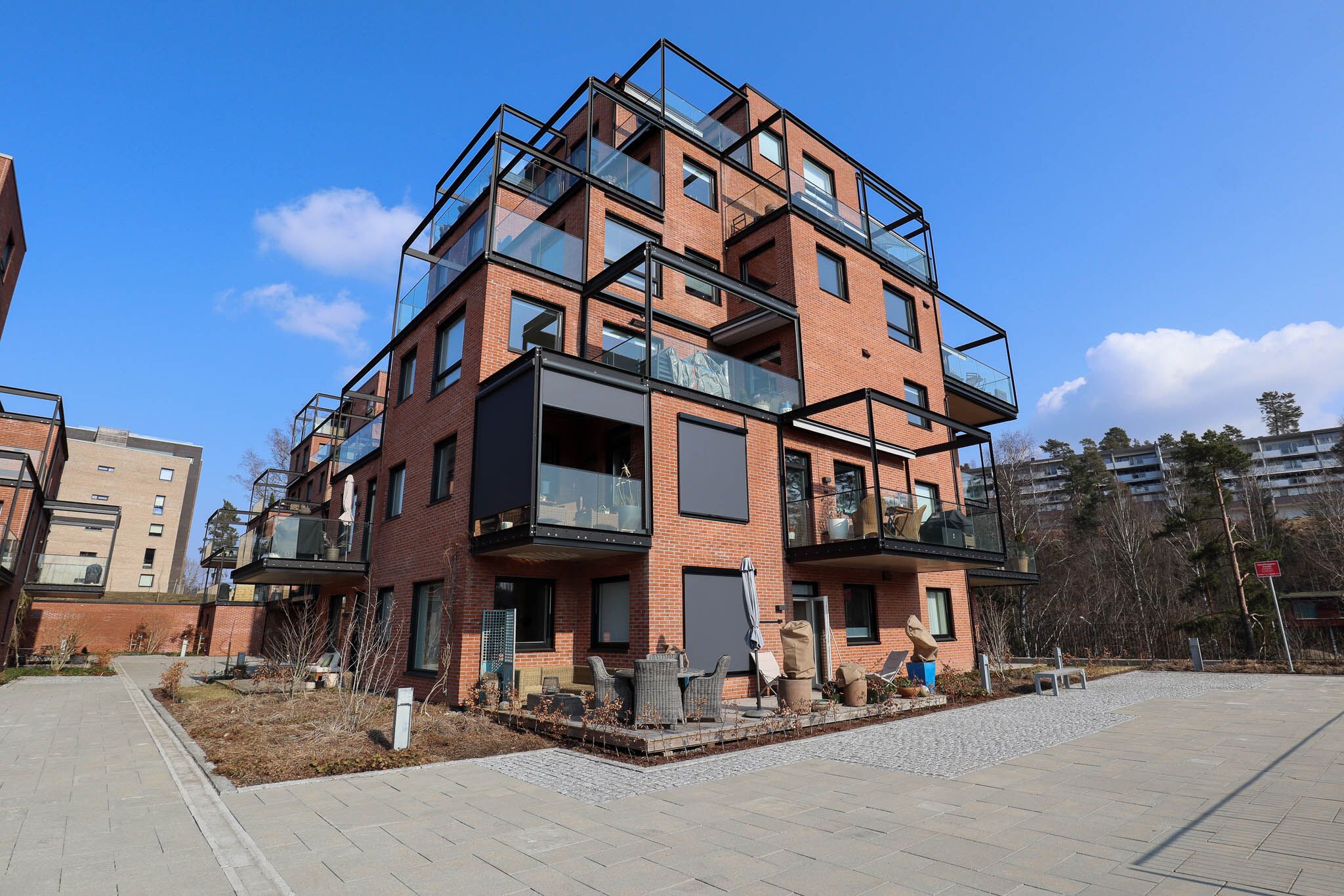 Da Skaret boligsameie i Kolbotn skulle velge leverandør av solskjerming til sine to leilighetsbygg, var vi i Solskjermingsgruppen så heldige at valget falt på oss. Skaret lot sine beboere stå for valget av solskjerming til sine boliger. Vi kunne tilby dem både pergola, markise og Zip-screen. Beboerne i de til sammen 61 leilighetene, gikk for ulike valg og sammen med den unike arkitekturen på bygget ble resultatet absolutt noe å skryte av.