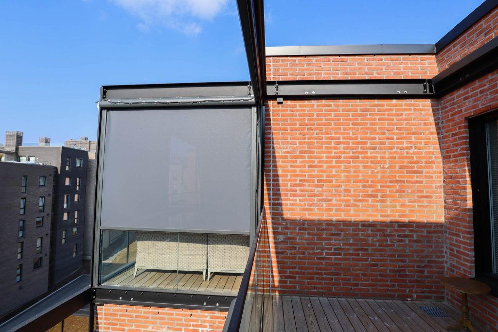 I tillegg til pergola og markise har noen også valgt å gå får Zip-screens på vinduer og terrasser. Disse skjermer for sol og innsyn og er også veldig vindstabile. De lar beboeren fortsatt ha utsyn av sin leilighet og de slipper ikke inn lysglimt fra sidene.