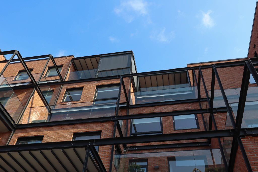 Byggene er konstruert i rød/brun teglstein med sorte detaljer, og fargene på markiseduker, screens og konstruksjoner måtte derfor tilpasses dette. På denne måten skapes det en god og helhetlig løsning hvor byggene ser komplett ut.